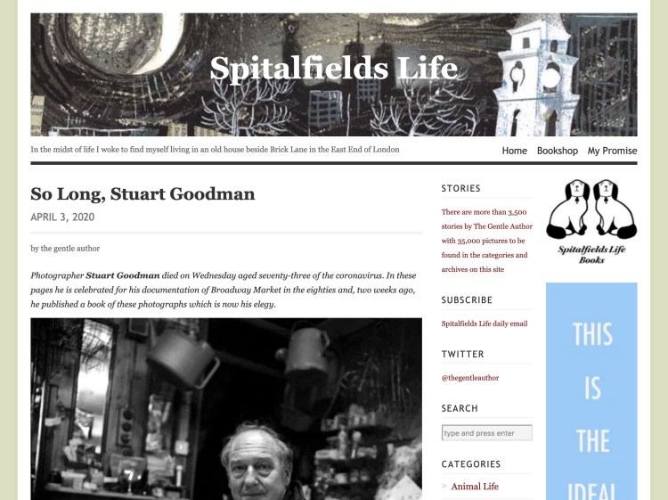 Tributes AboutTributesPhotos Some online tributes to Stuart The Bookseller Spitalfields Life Press Gazette OWN IT! Evening Standard Photo Archive News Eastern Daily Press Hackney Magazine